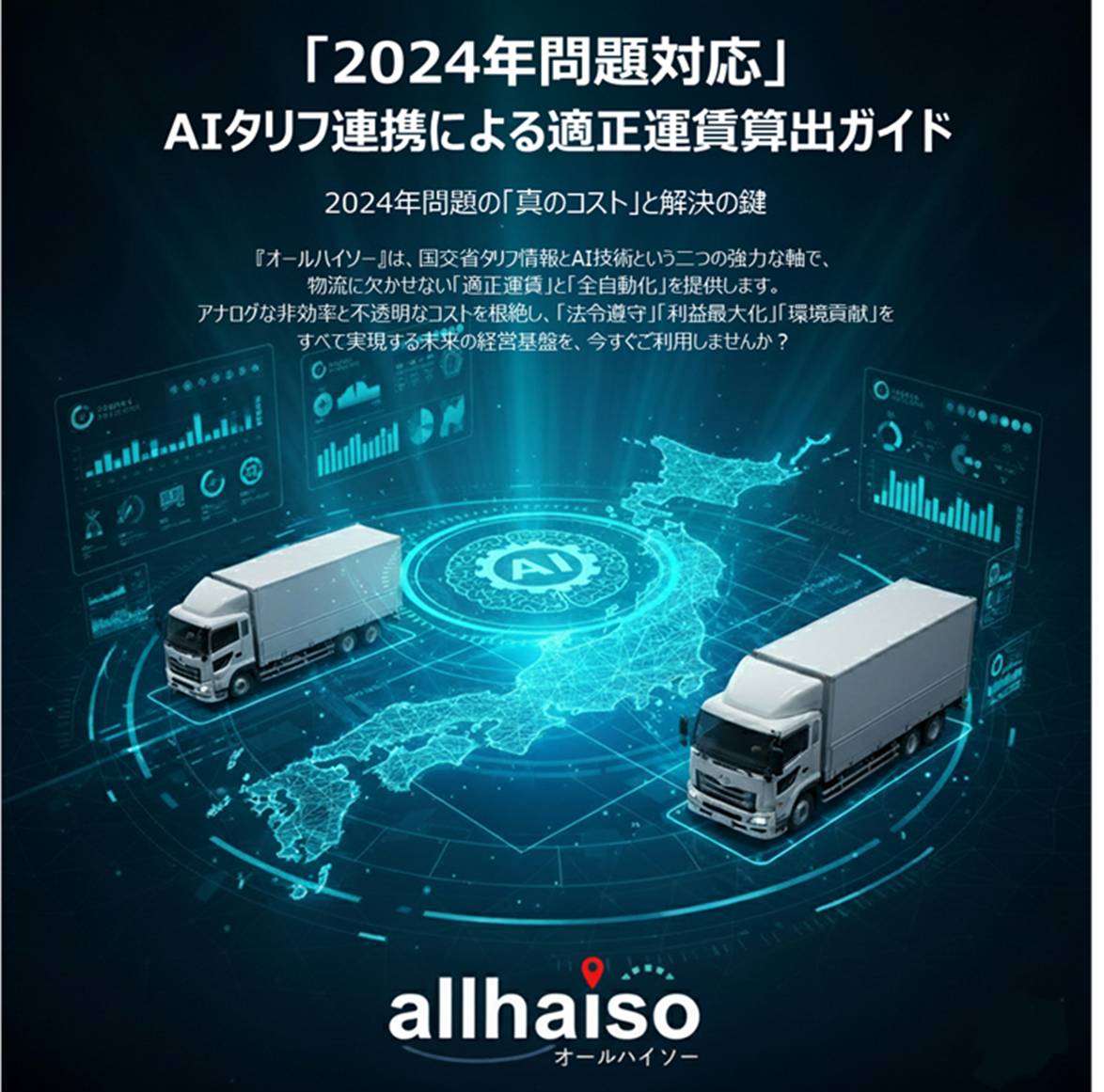 『オールハイソー』は、国交省タリフ情報とAI技術という二つの強力な軸で、物流に欠かせない「適正運賃」と「全自動化」を提供します。